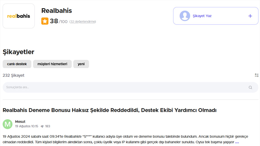 Elbette her kullanıcı deneyimi kendine özeldir. Bazı oyuncular bir sitede sorun yaşamazken, bazıları sıkıntı yaşayabilir. Önemli olan, sitenin genel itibariyle ortaya koyduğu performanstır. TÜZED ekibi olarak Realbahis’i kapsamlı bir teste tabi tuttuğumuzda, genel memnuniyet düzeyimizin yüksek olduğunu belirtelim. Özellikle hızlı para yatırma-çekme, 7/24 canlı destekten anında yanıt alma ve oyun çeşitliliği noktasında site beklentilerimizi karşıladı.